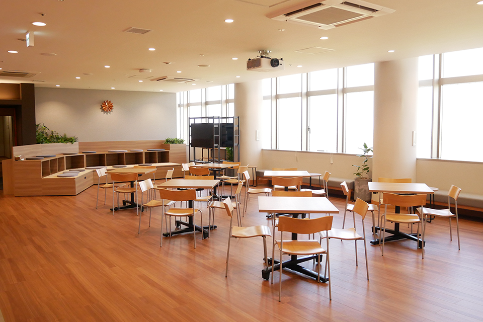 最新のコーヒーメーカーや給茶機、冷蔵庫、電子レンジも設置されています。みんなでランチタイムを過ごしたり少人数でミーティングをするなど、コミュニケーションをとる場所として使用されています。