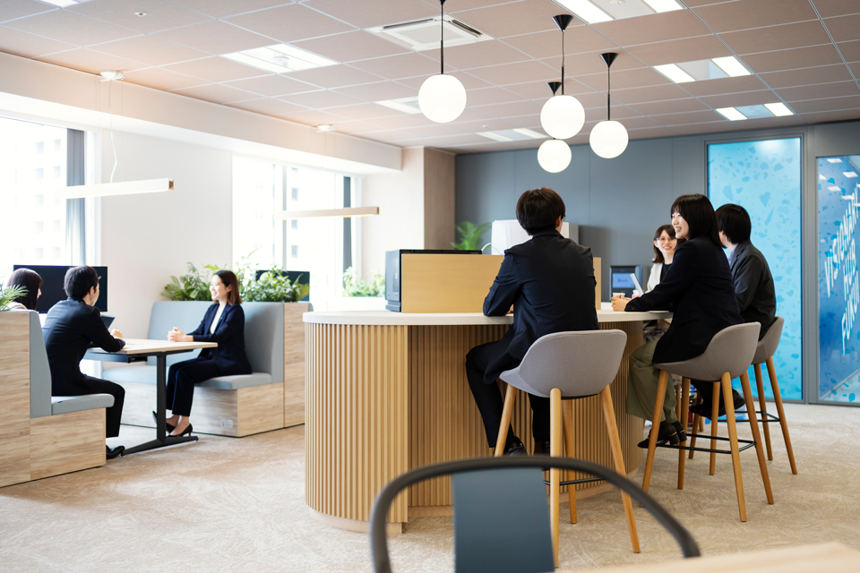 すべての社員が利用できる、フリーアドレスのワーキングスペースになります。気分や状況に合わせて好きな場所・スタイルで仕事ができます。